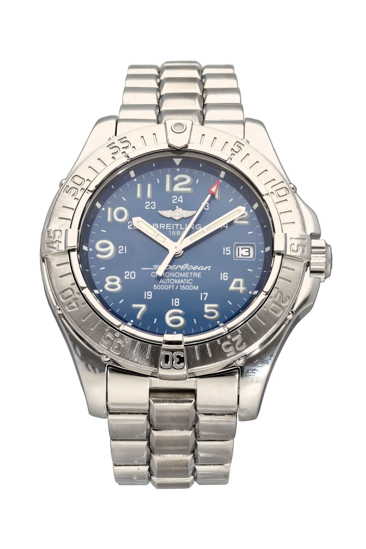 BreitlingSuperocean Купить 200 000 ₽ $2 340 2 000 € Как новыеВ наличииМеханический с автоподзаводомДиаметр корпуса 42 мм42 ммВодонепроницаемость 1500 М1500М